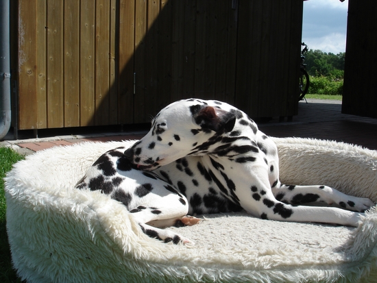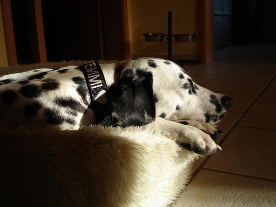 Pssst... sie schläft noch (mit neuem Halsband). Herzlichen Glückwunsch! |
