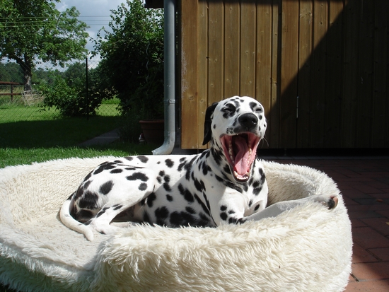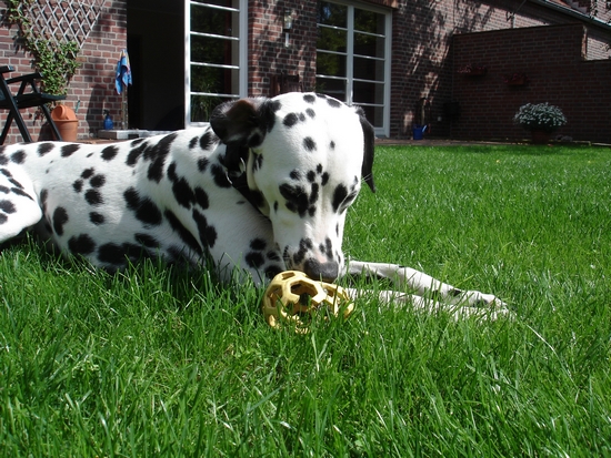 Frauchen, ich komme gleich. Erst mal waschen... hab' ja Geburtstag! |