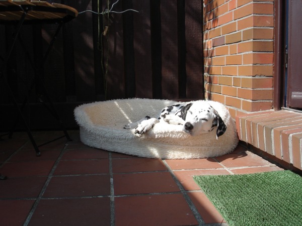 Mein Körbchen ist natürlich mitgereist. Entspannung pur nach einen Deichspaziergang.